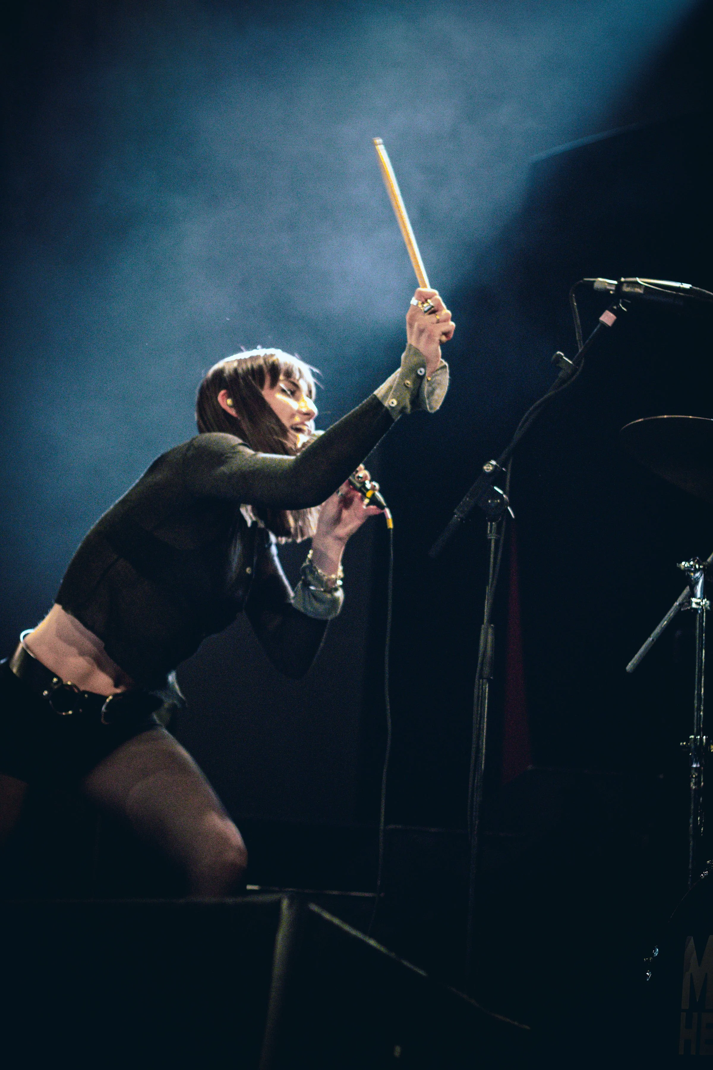 She playfully danced with both the crowd and her bandmates. During one song, she tossed a drumstick into the audience for a lucky fan after crashing the cymbals. Later in the set, she grabbed a guitar pick and playfully strummed her bandmate’s guitar.